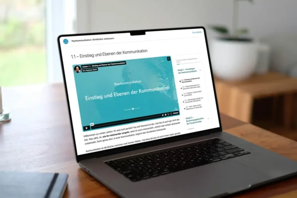 Konflikte sind unvermeidbar, aber Verletzungen müssen es nicht sein. In meinem Onlinekurs zur Paarkommunikation lernst du, wie du und dein Partner oder deine Partnerin wieder achtsam, ruhig und respektvoll miteinander sprecht. Mit über 40 Videos, Übungen und Reflexionen erhältst du ein komplettes, praxiserprobtes Training, um eure Streitkultur nachhaltig zu verbessern – so, wie ich es mit Paaren in meiner Praxis anwende.